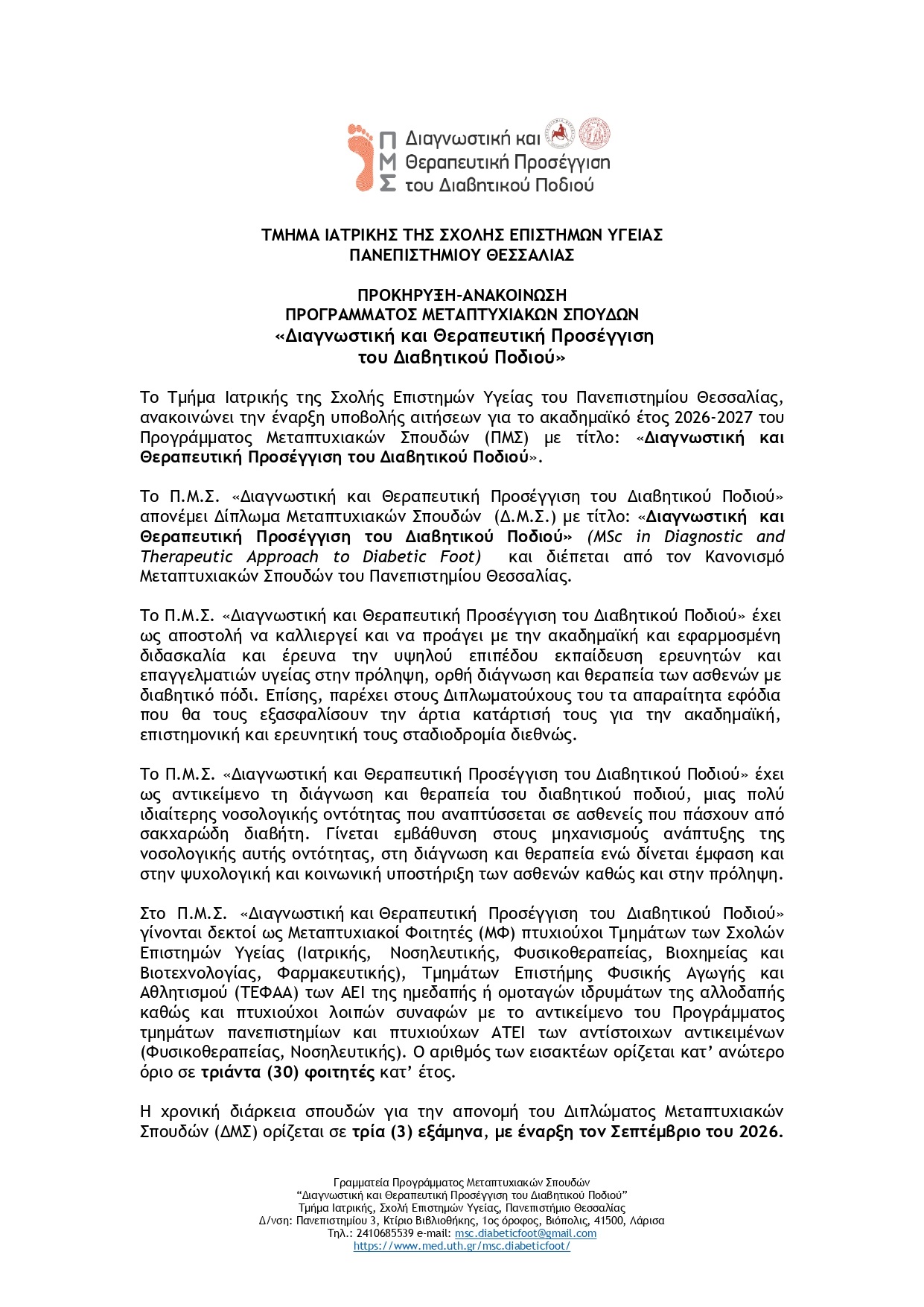 ΠΡΟΚΗΡΥΞΗ ΠΜΣ ΔΙΑΓΝΩΣΤΙΚΗ ΚΑΙ ΘΕΡΑΠΕΥΤΙΚΗ ΠΡΟΣΕΓΓΙΣΗ ΤΟΥ ΔΙΑΒΗΤΙΚΟΥ ΠΟΔΙΟΥ